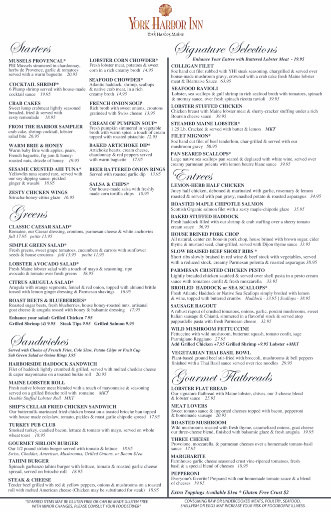 Our 1637 Main Dining Room offers fine dining in a historic, casual setting with incredible views of York Harbor. With its rich history and elegant architectural charm, stepping through our doors is akin to stepping into a chapter of maritime heritage. As you enjoy each dish crafted by our masterful chefs, you are transported on a journey that pays homage to the Maine coast’s bountiful offerings. From locally sourced seafood to artisanal creations inspired by seafaring explorations, our menu is a symphony of culinary craftsmanship.