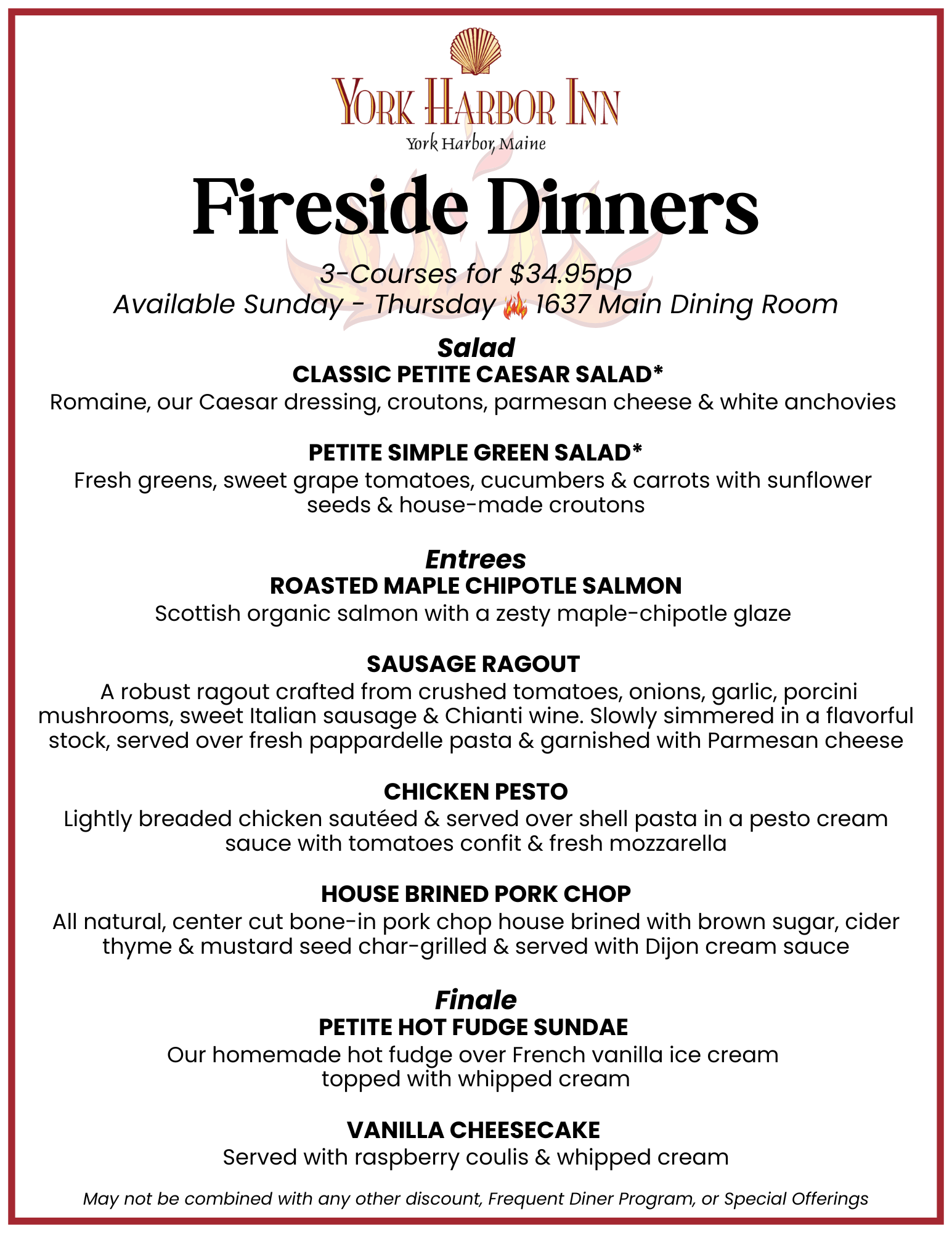 3-Course Prix Fixe Menu $34.95 per person